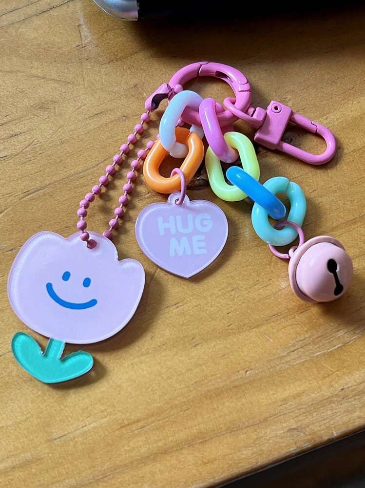 Hermoso llavero kawaii con flor y corazón (hug me)