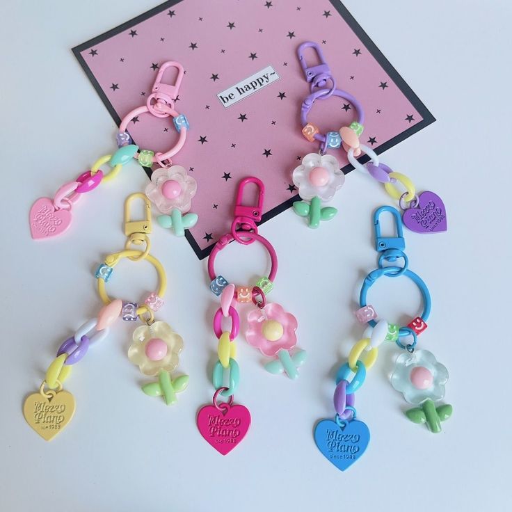 Hermoso paquete de cinco llaveros multicolor que puedes usar para elevar con su hermoso estilo y color cualquier bolso, llaves, o celular.
